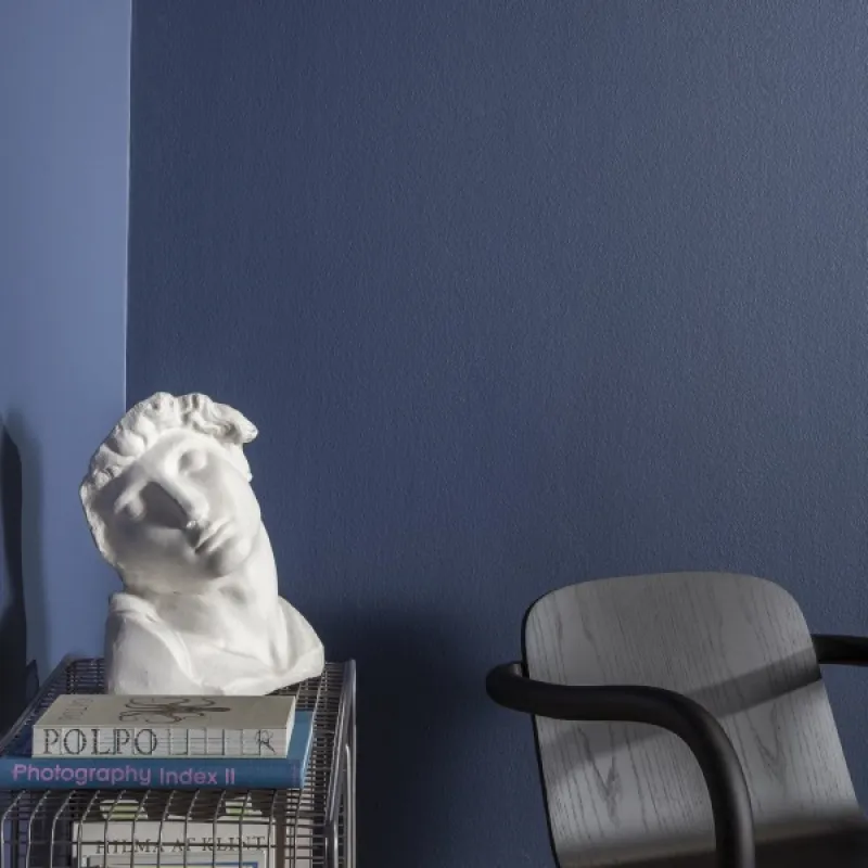 Summer night blue, just before sunrise. A slight red twinkle in a deep inky shade of blue fills the space with a composed feel.