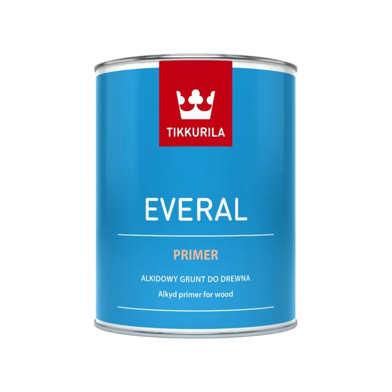 Matt alkyd paint for priming of raw wood surfaces, dry concrete, plaster, surfaces treated with putty, bricks, gypsum and also surfaces previously painted with lime or glue coats. Tikkurila Everal Primer insulates discolorations coming from substrate and protects substrates damaged by humidity and humid stains. The paint features thixotropic consistence and for that reason does not run off vertical surfaces