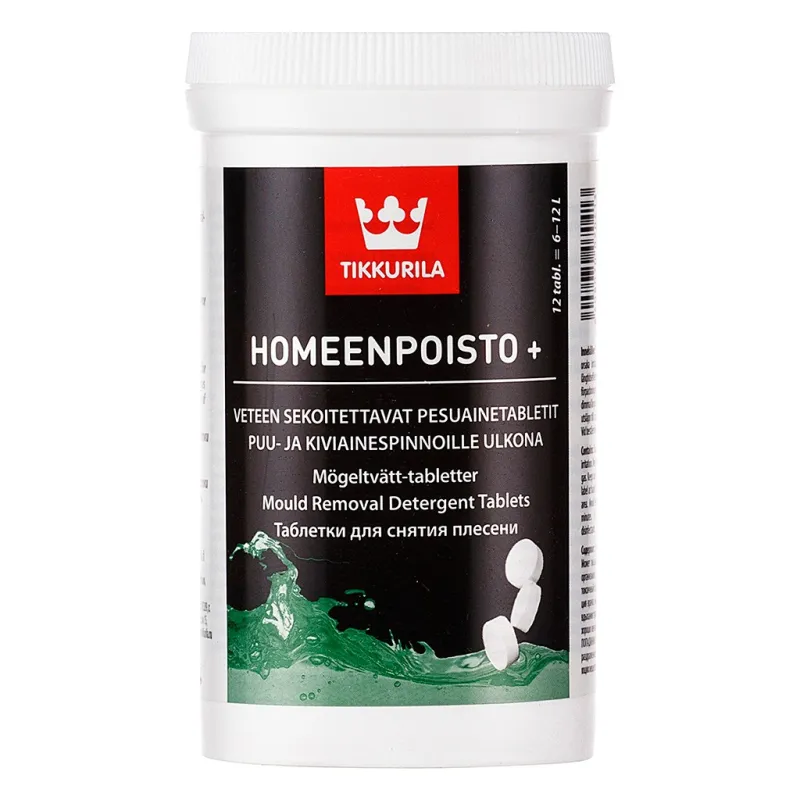 Do not carry water home. The Homeenpoisto Mold Removal Tablets are easy to dissolve in water for just the right amount of cleaning solution you need. The remaining tables will keep well in dry conditions until the next use.