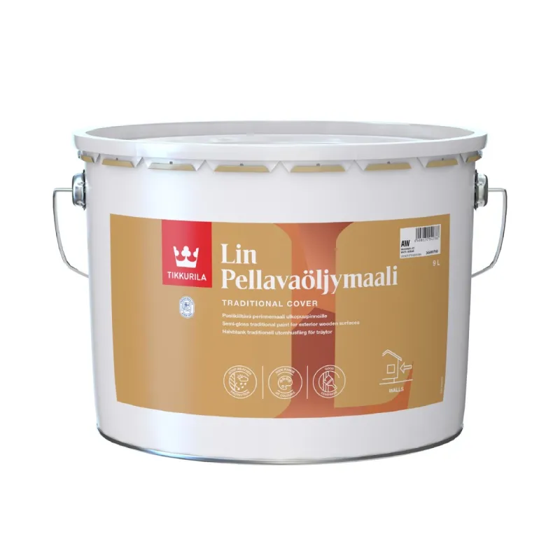 The paint provides good coverage and is brushed thinly on a wooden surface. Besides surfaces previously treated with oil paint, Lin Pellavaöljymaali can also be used on untreated primed wood.