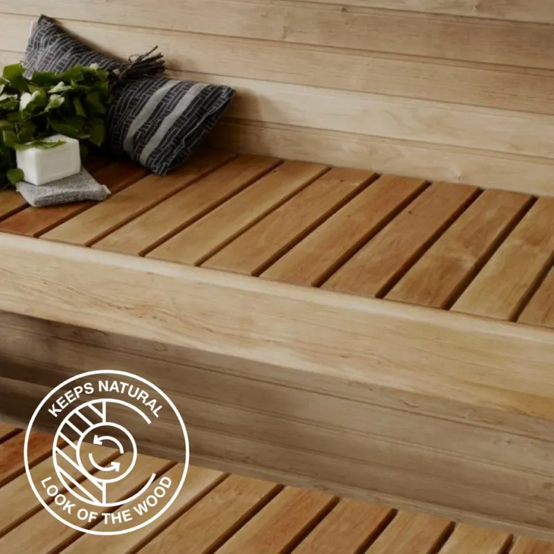 Supi Laudesuoja protects wooden sauna benches from moisture and dirt. The surface of the sauna bench, treated with Supi Laudesuoja, stays clean.