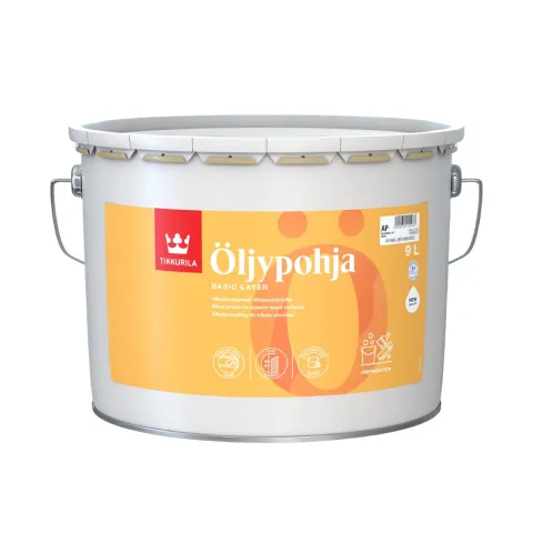 Use Öljypohja for the first coat. Öljypohja must be diluted 10% with white spirit. Öljypohja ensures that the finishing coat adheres well on the weathered, old wooden surface.