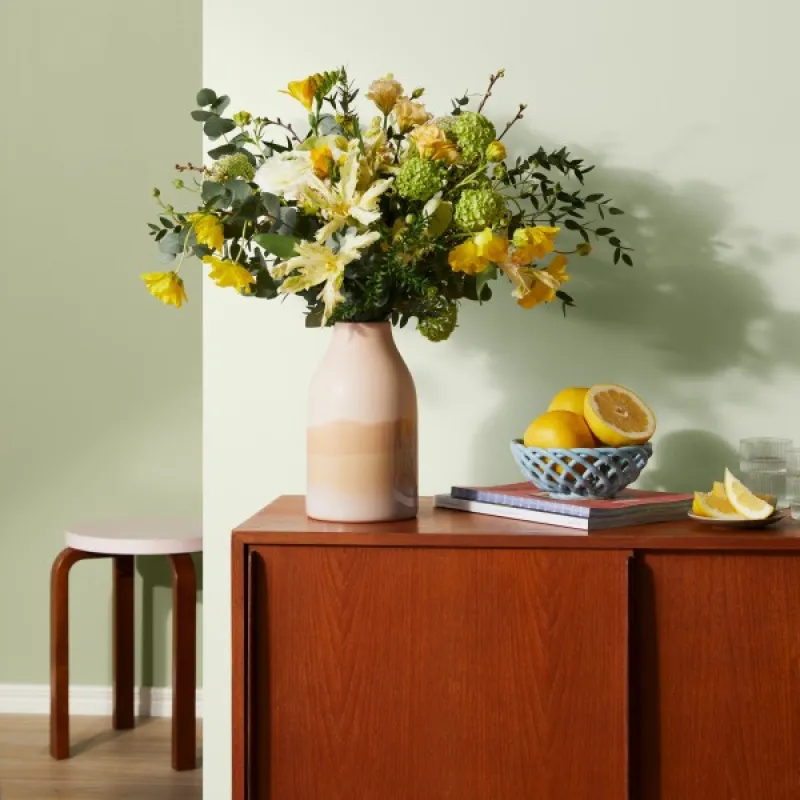 The delicate green of a flower bud. The light changes the nature of this soft and earthy green. It has a calming effect when used in the living room or bedroom.