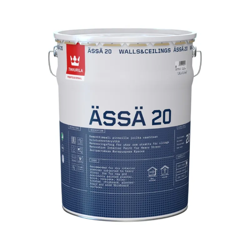 Ässä 20 has received an M1 category for its low emissions as well as Nordic Swan ecolabel. Product is developed in cooperation with Finnish Allergy, Skin and Asthma Association. It can be used in LEED and BREEAM constructions (see Product Data Sheet for details). It also has MED (Marine Equipment Directive) certificate.
