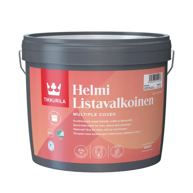 Well-covering and durable acrylate paint. White ready-made-shade commonly used in industry for painting trim, doors, and windows.