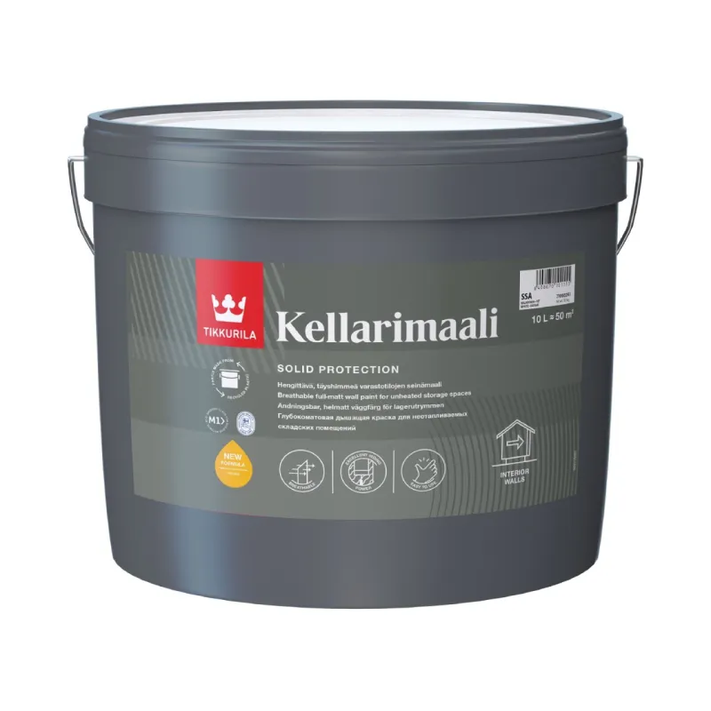 The porous structure of silicate paint ensures breathable surface. Excellent water vapor permeability makes Kellarimaali suitable for cellars, garages and other unheated storage spaces.
