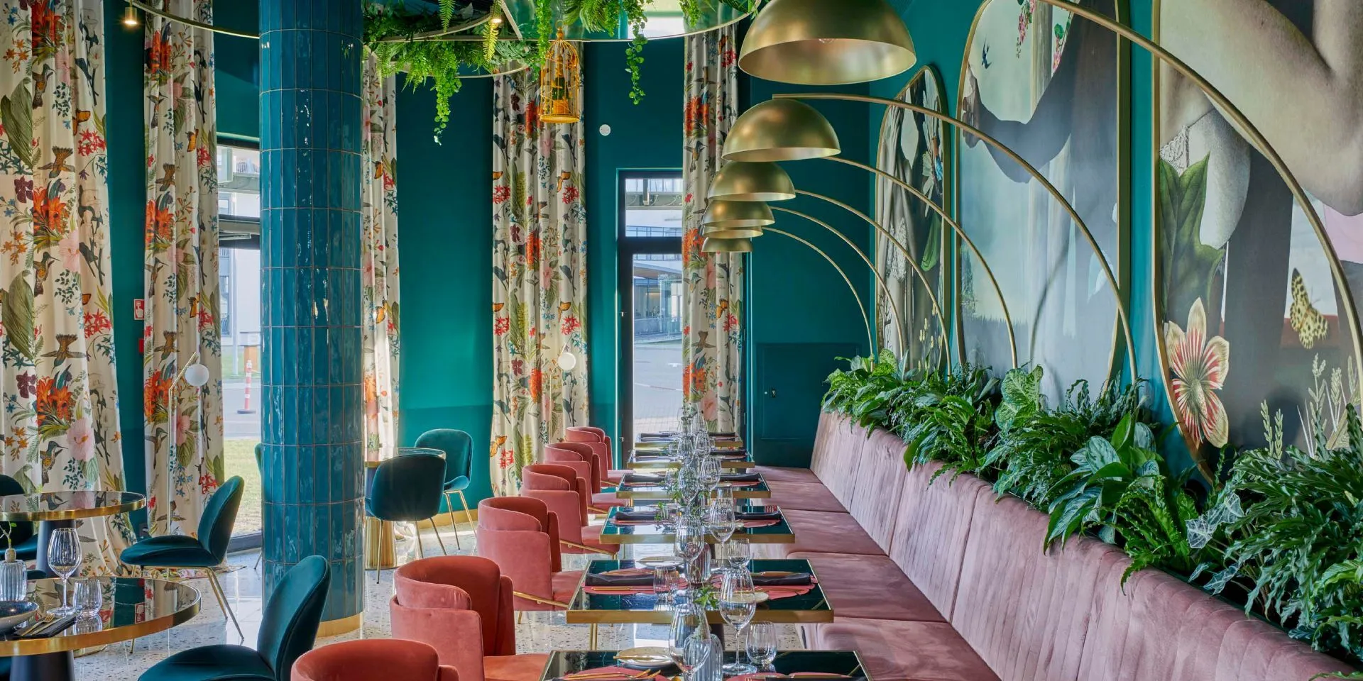 The hotel's interior is dominated by the colour emerald, which reflects the green of the surrounding pines. The bright, contrasting interior was created by interior architect Viktorija Puodžiūtė and her team. In the interior, the prevailing Art Deco lines of the early 20th century intertwine with motifs characteristic of the postmodern Memphis Group.